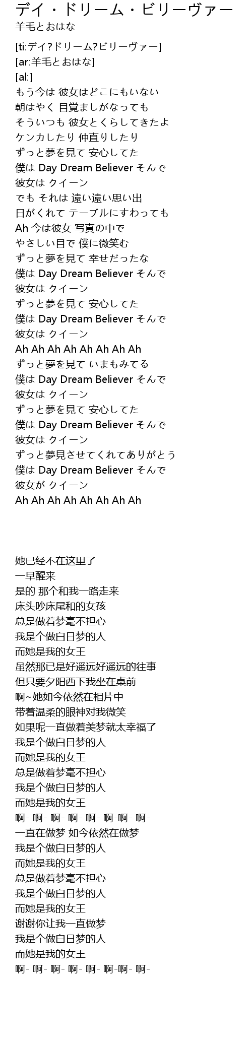 | [02:28.21] | 僕は Day Dream Believer そんで |
