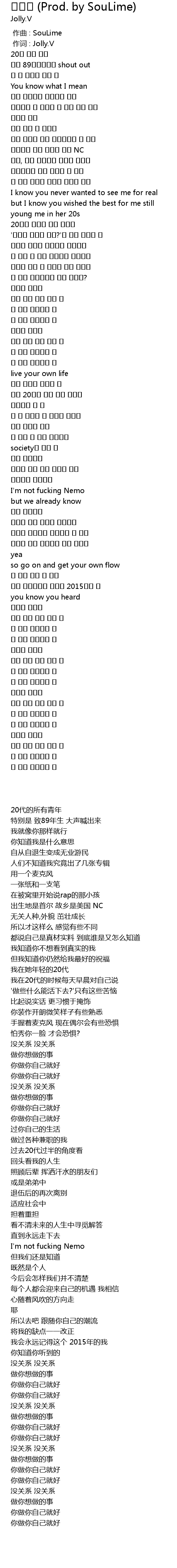| [00:01.00] | 作词 : Jolly.V |