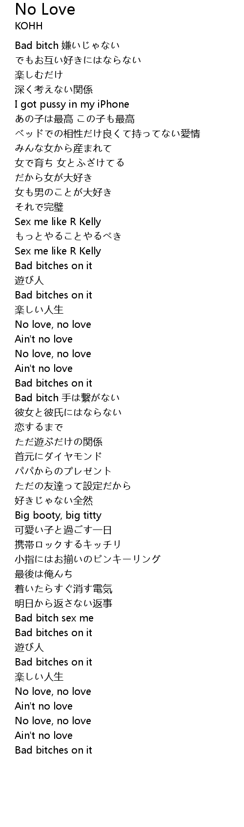 | [01:24.690] | No love, no love |