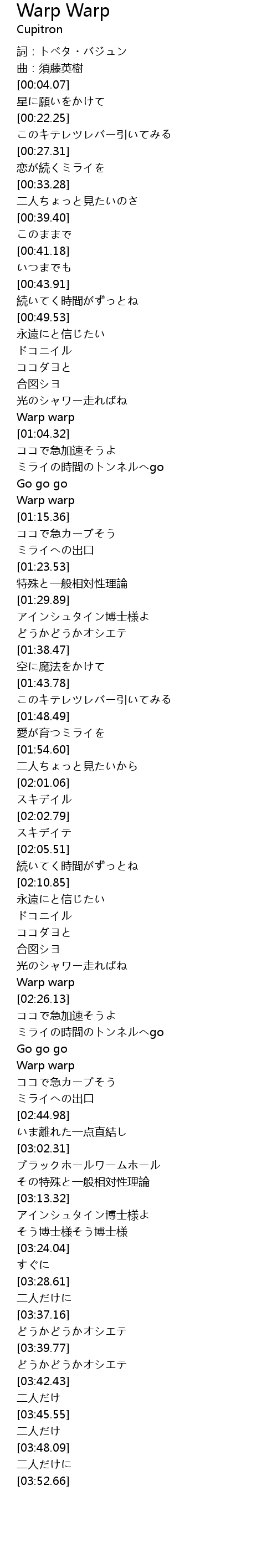 | [02:30.39] | ミライの時間のトンネルへgo |