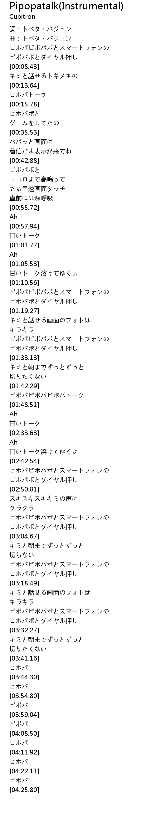 Pipopatalk(Instrumental) 歌词