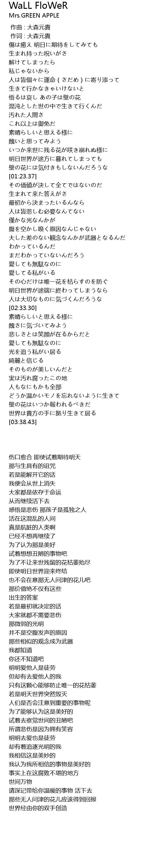| [02:15.69] | その心だけは唯一花を枯らすのを防ぐ |