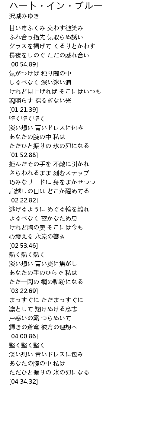 | [01:30.03] | 淡い想い 青いドレスに包み |
