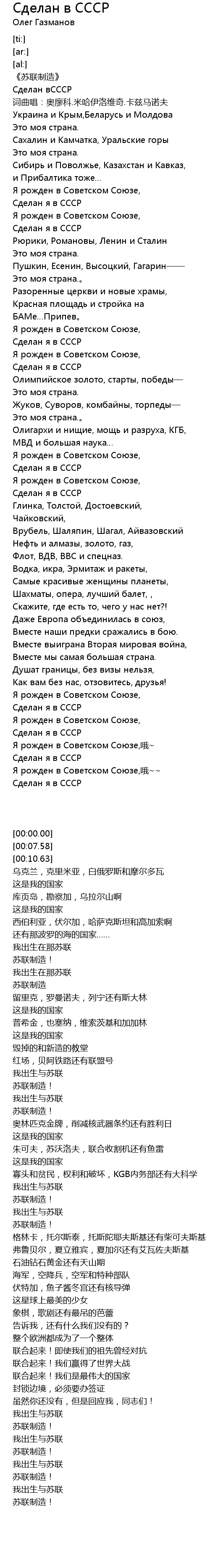| [00:44.84] | Я рожден в Советском Союзе, |