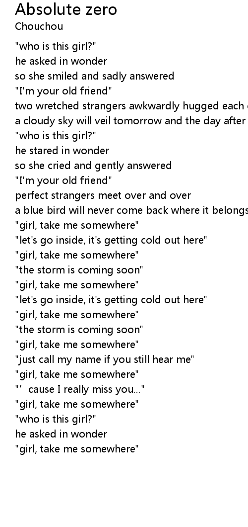 | [02:58.40] | " girl, take me somewhere" |