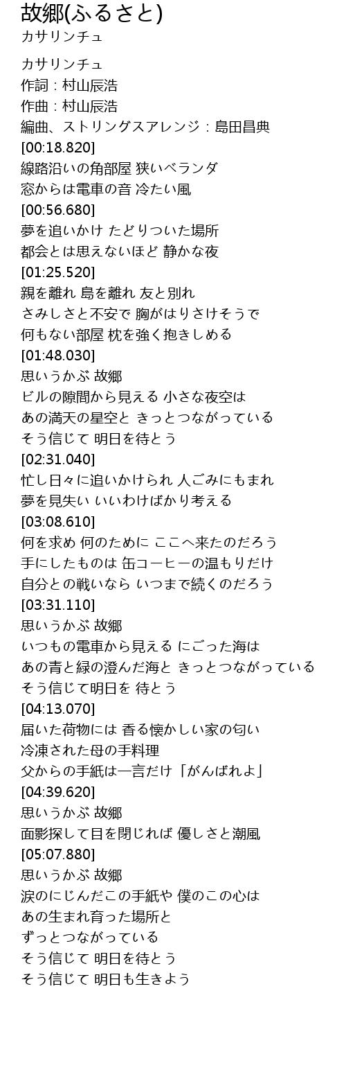 | [05:08.770] | 思いうかぶ 故郷 |