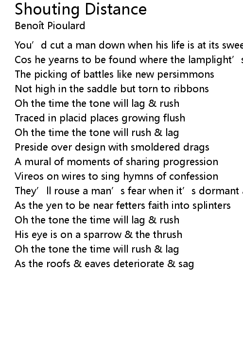 | Oh the tone the time will lag & rush | |