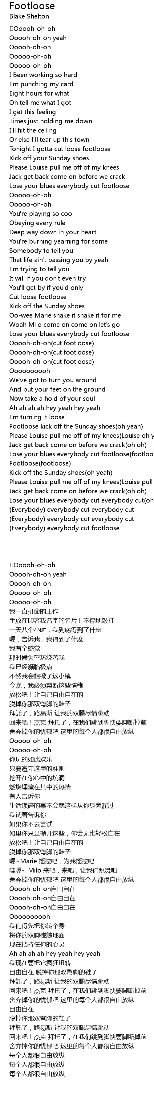 | [02:59.740] | Lose your blues everybody cut footloose(footloose) |
