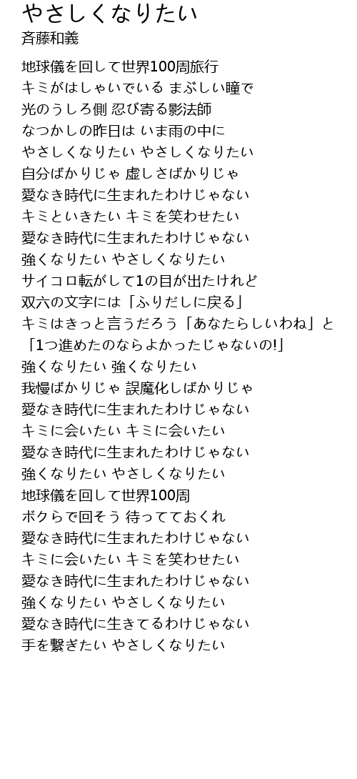 | 歌曲 | やさしくなりたい |