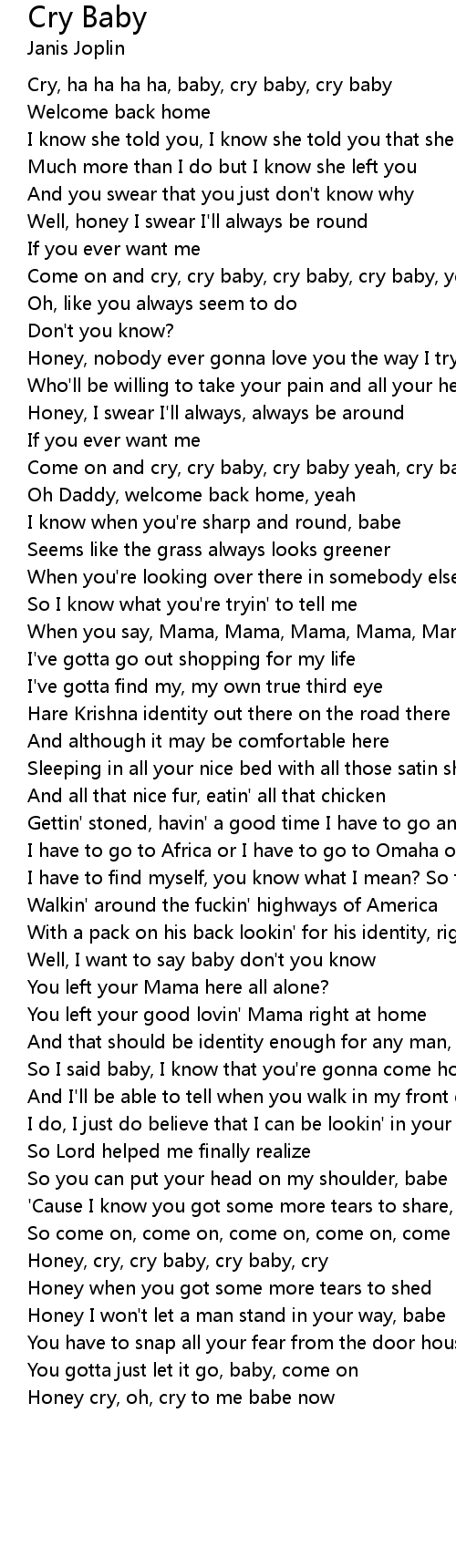 Come on and cry, cry baby, cry baby yeah, cry baby, yeah |