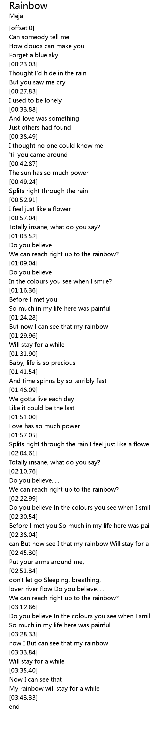 | [03:41.02] | My rainbow will stay for a while |