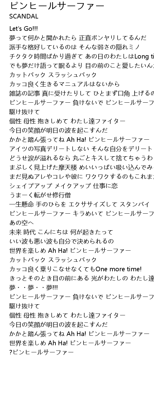 | 歌曲 | ピンヒールサーファー |