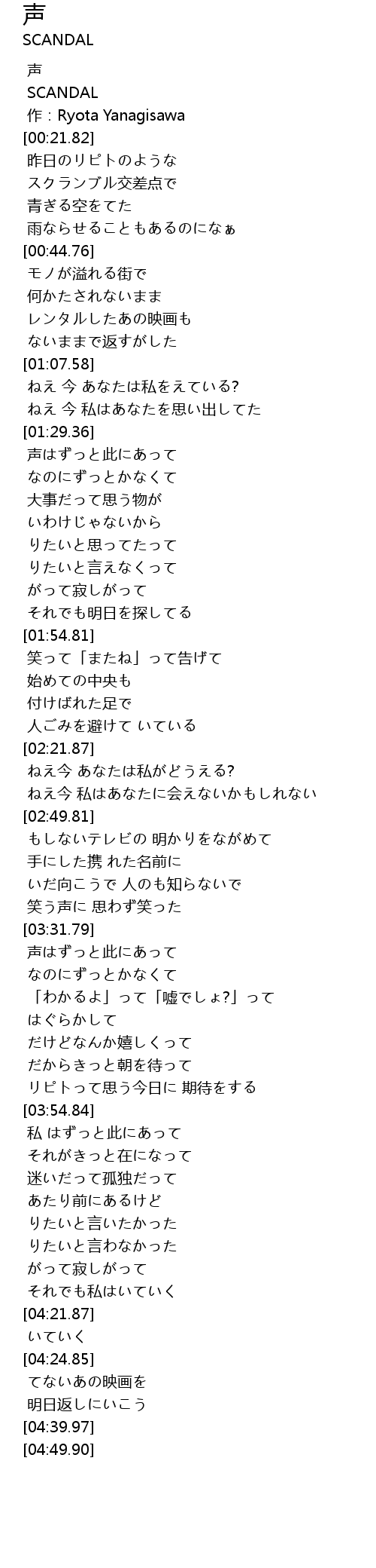 | [03:38.11] | 「わかるよ」って「嘘でしょ?」って |