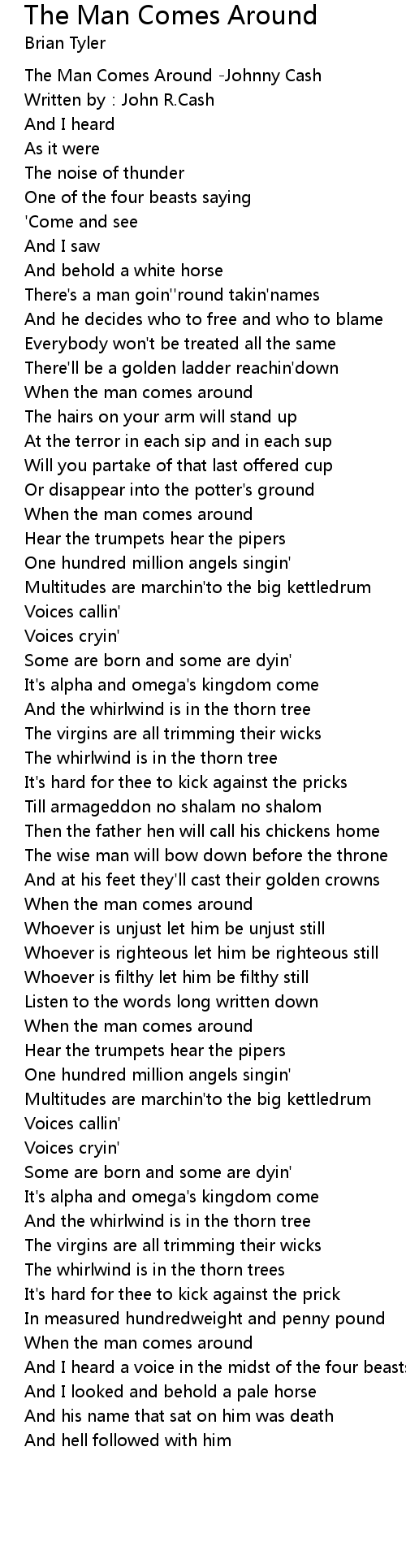 | [00:00.00] | The Man Comes Around -Johnny Cash |
