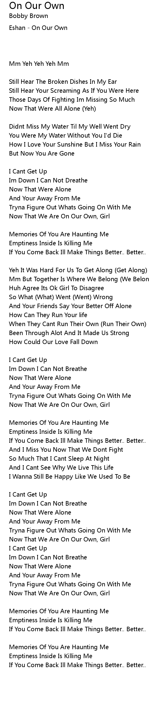 Now That Were All Alone (Yeh) |