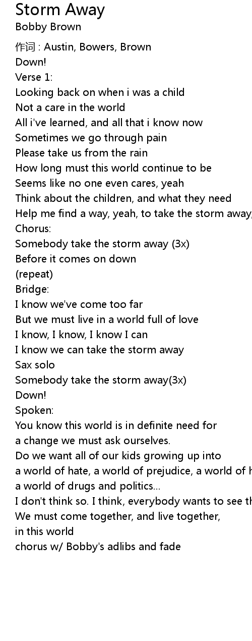 | Help me find a way, yeah, to take the storm away, Yeah | |
