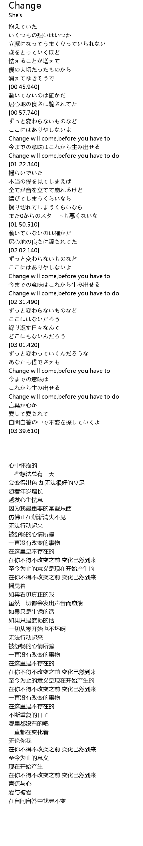 | [02:11.710] | 在你不得不改变之前 变化已然到来 |