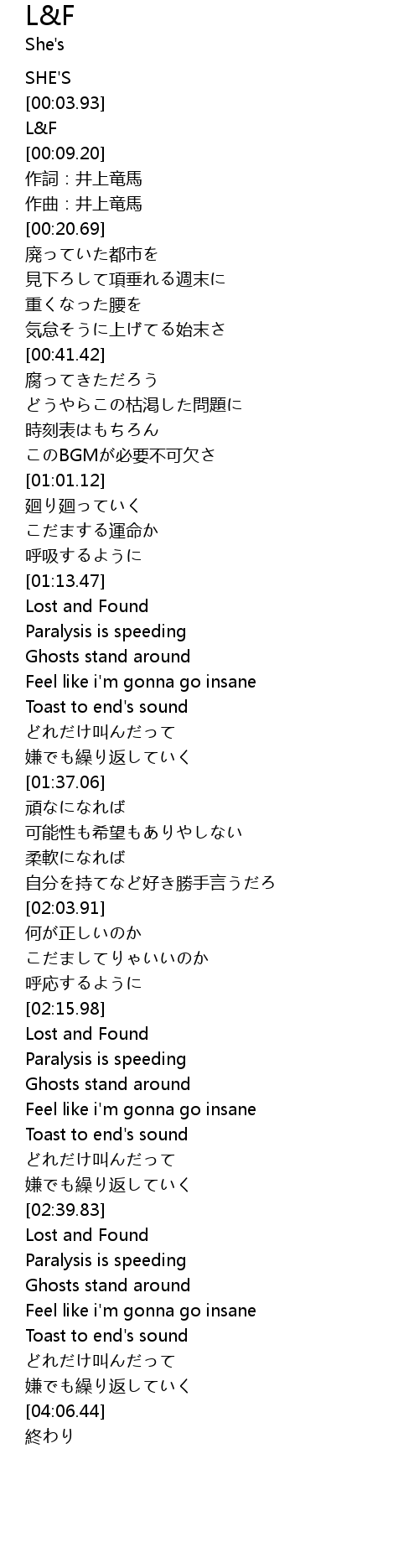 | [00:36.57] | 気怠そうに上げてる始末さ |
