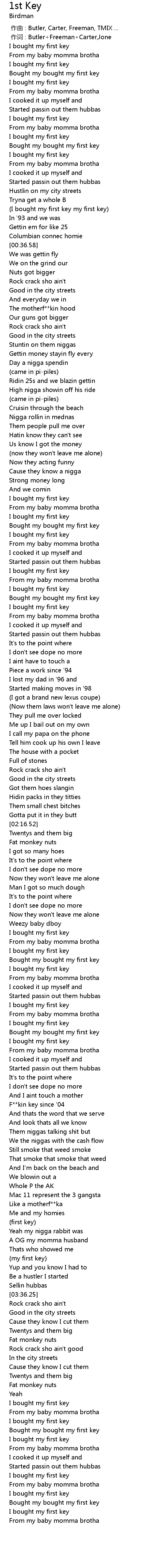 | [01:52.52] | (I got a brand new lexus coupe) |