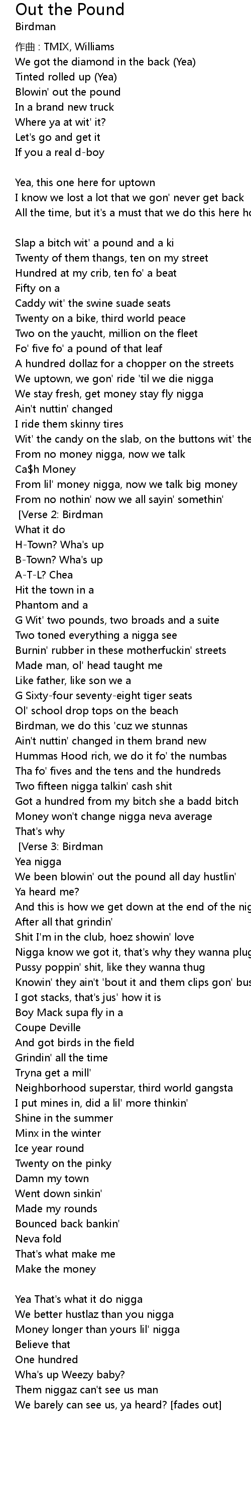 | Mo' money nigga, mo' money nigga Hook 2X Verse 2: Birdman | |
