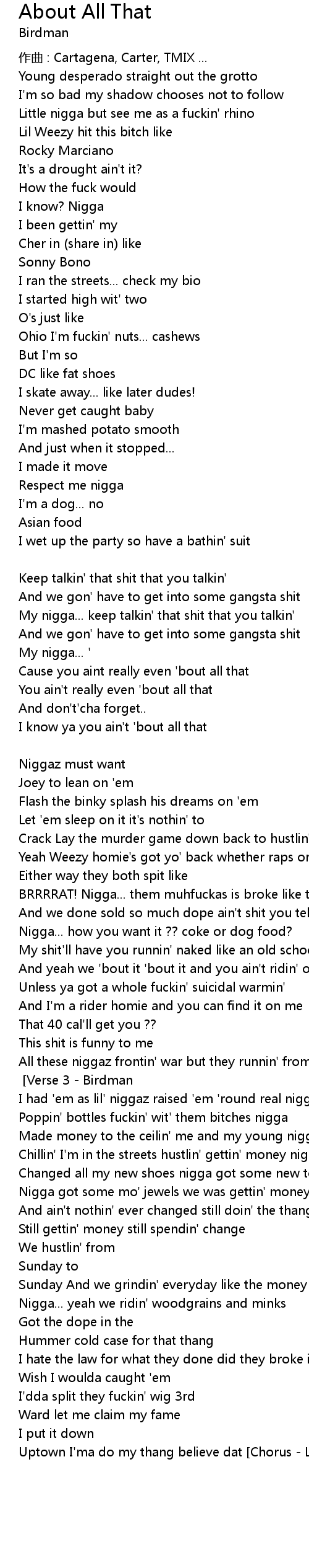 | You ain't really even 'bout all that | |