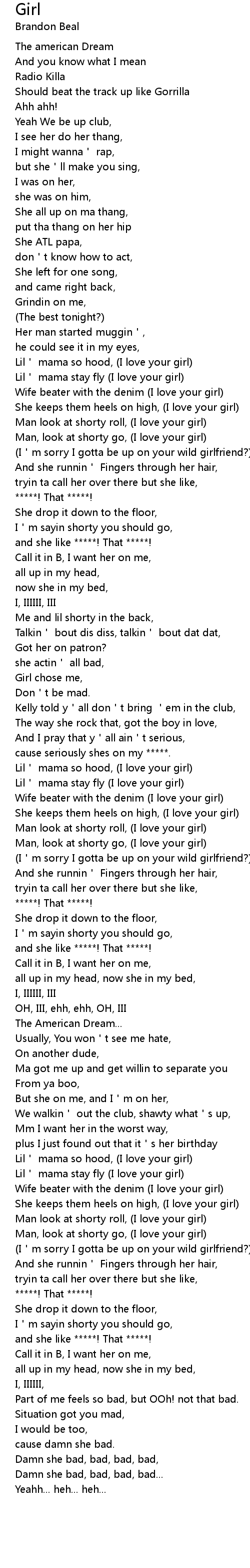 | (I'm sorry I gotta be up on your wild girlfriend?) | |