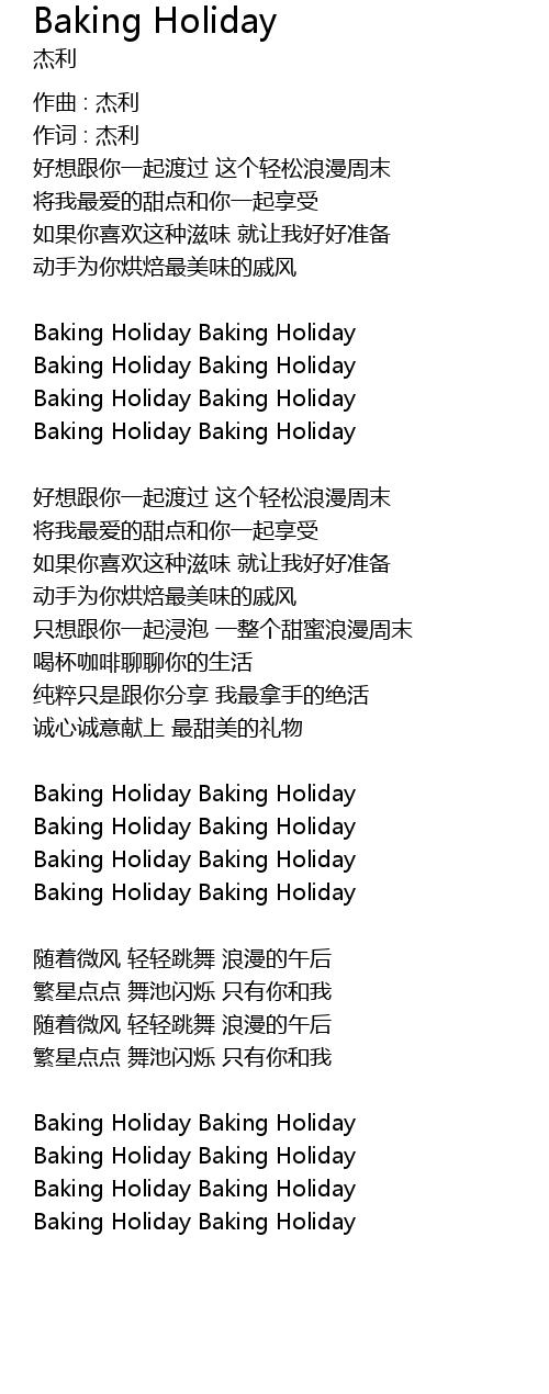 | 歌曲 | Baking Holiday |
