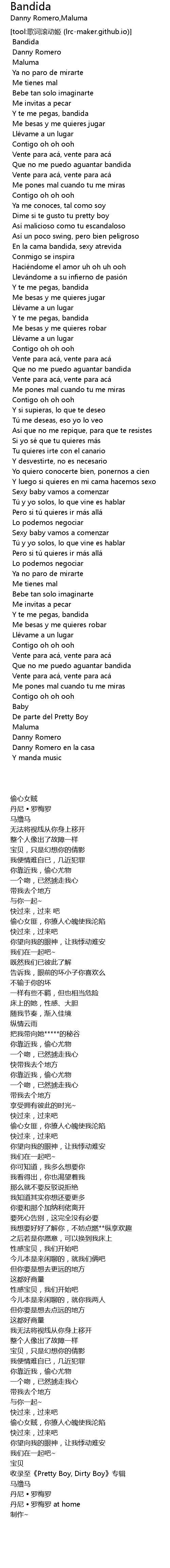 | [00:55.521] | En la cama bandida, sexy atrevida |