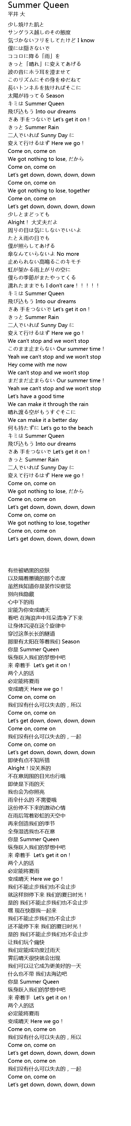| [00:38.03] | 你是 Summer Queen |