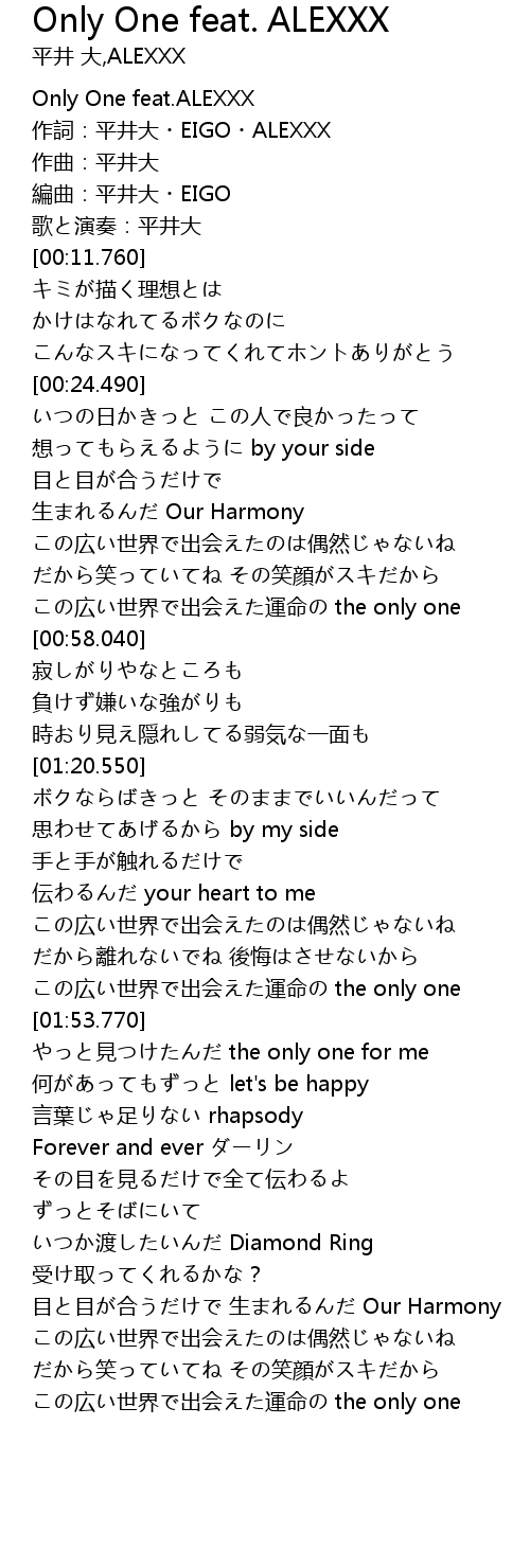 | [00:02.810] | 作詞:平井大・EIGO・ALEXXX |