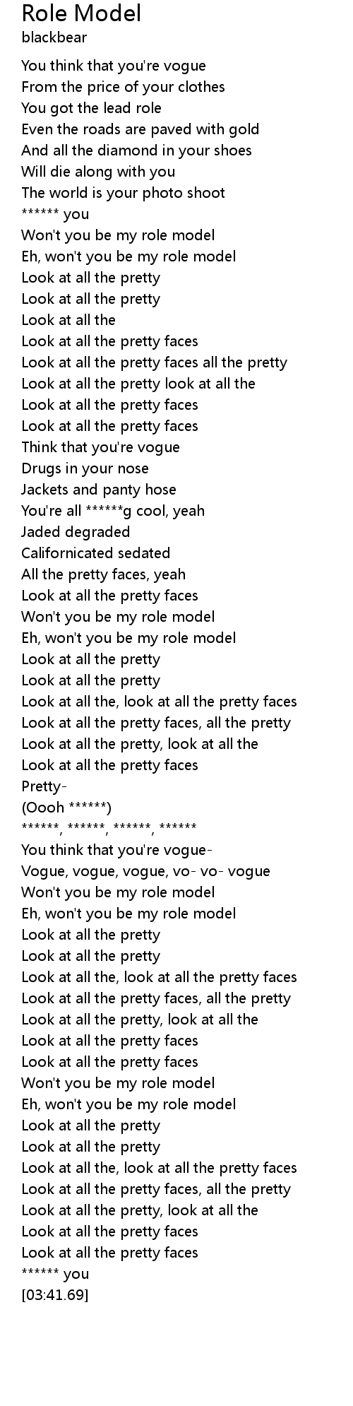 | [03:17.00] | Won't you be my role model |