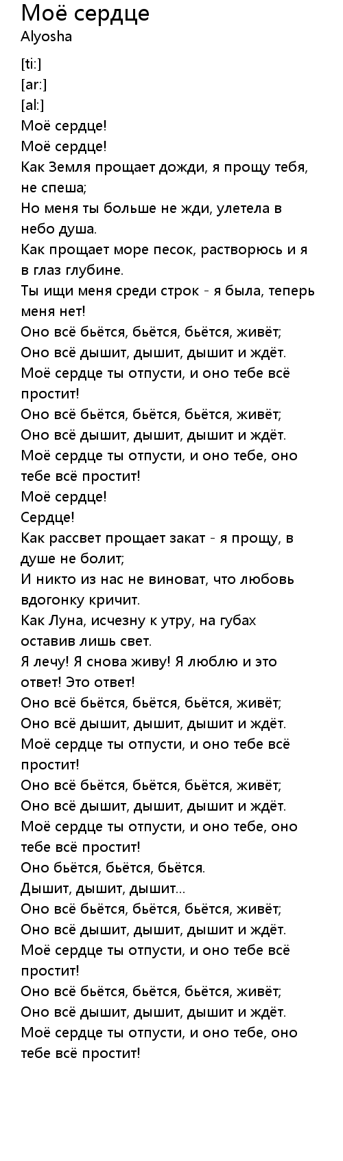 Моё сердце ты отпусти, и оно тебе, оно тебе всё простит! |