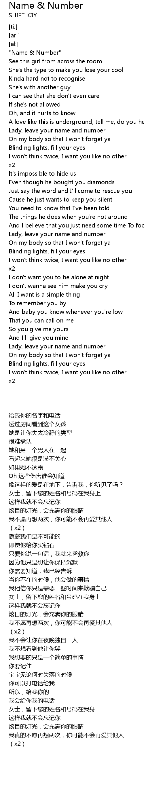 "Name & Number" |
