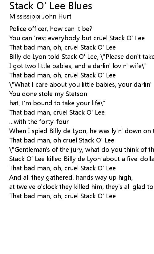 That bad man, oh cruel Stack O' Lee |