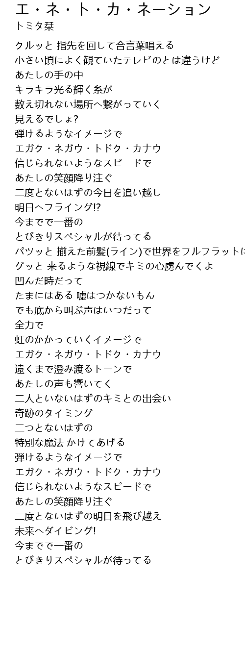 | 歌曲 | エ・ネ・ト・カ・ネーション |