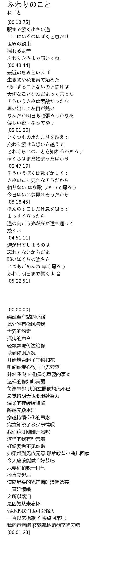 | [05:16.77] | ふわり明日まで響くよ 音 |