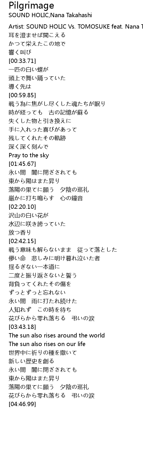 | [04:23.15] | 落陽の果てに願う 夕陰の巡礼 |