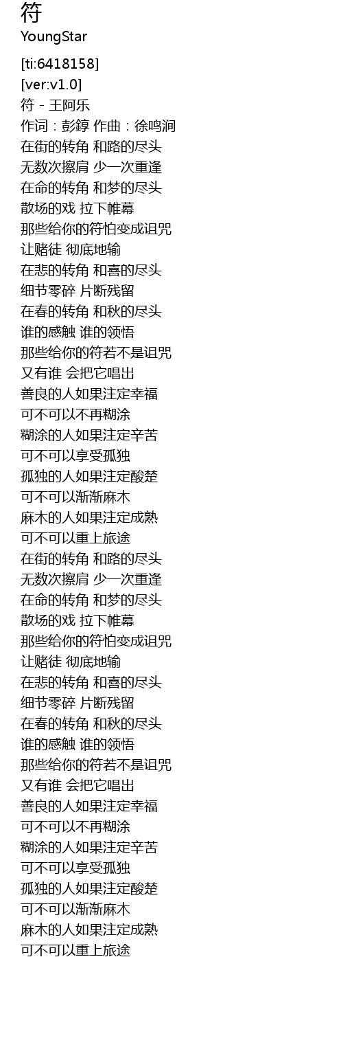 | [00:00.63] | 符 - 王阿乐 |
