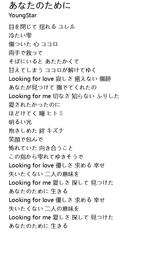 | Looking for love 寂しさ 癒えない 傷跡 | |
