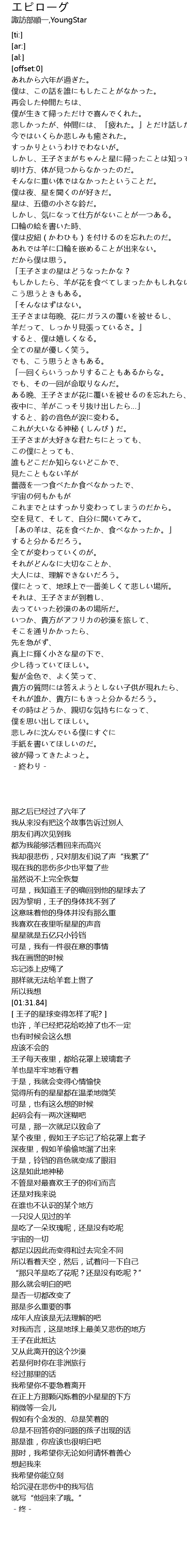 | [00:35.20] | 可是,我知道王子的确回到他的星球去了 |