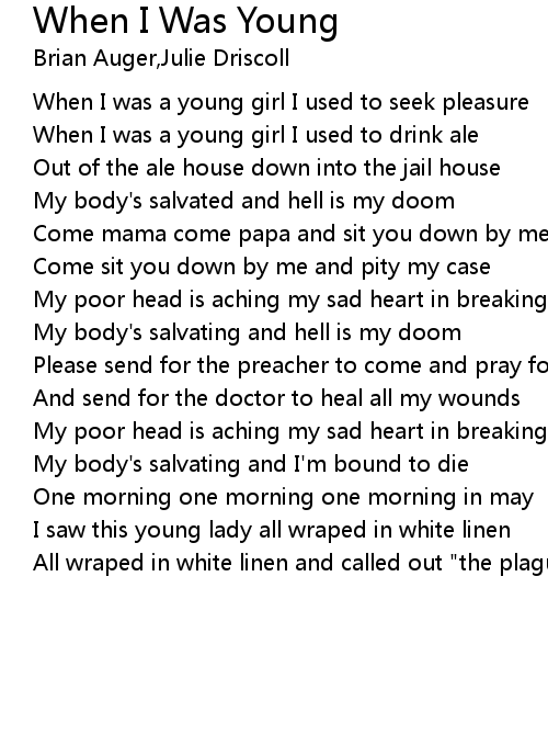 When I was a young girl I used to seek pleasure |