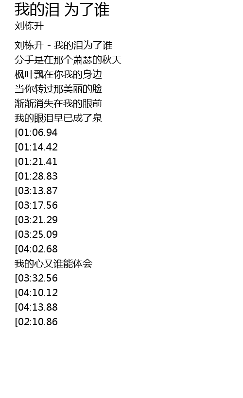 | [03:47.59][03:13.87][01:36.43] | 我的泪是为了谁 |