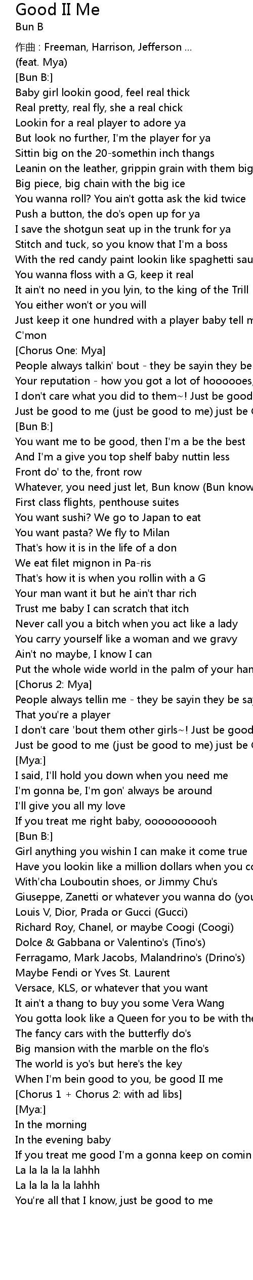 | When I'm bein good to you, be good II me | |