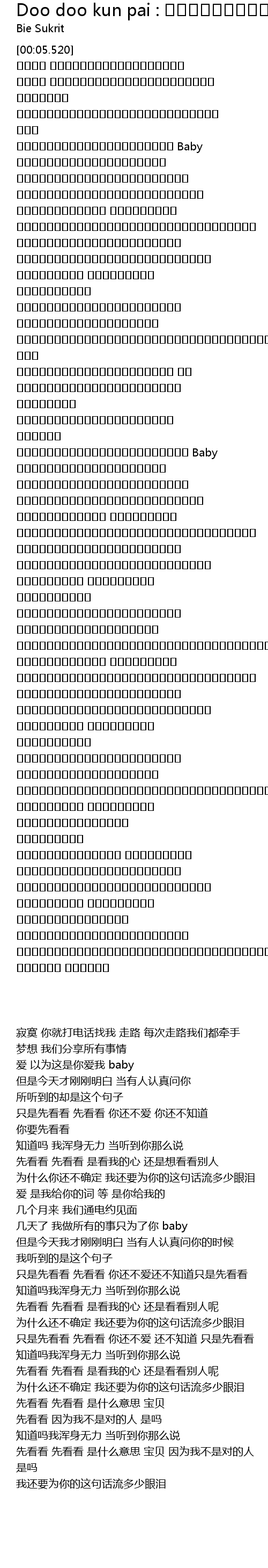 | [01:49.420] | กี่วัน ที่ฉันทำเพื่อเธอคนเดียว Baby |