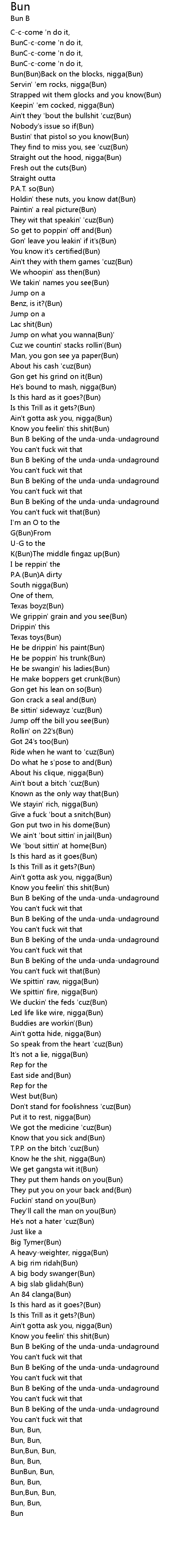 | Bun(Bun)Back on the blocks, nigga(Bun) | |
