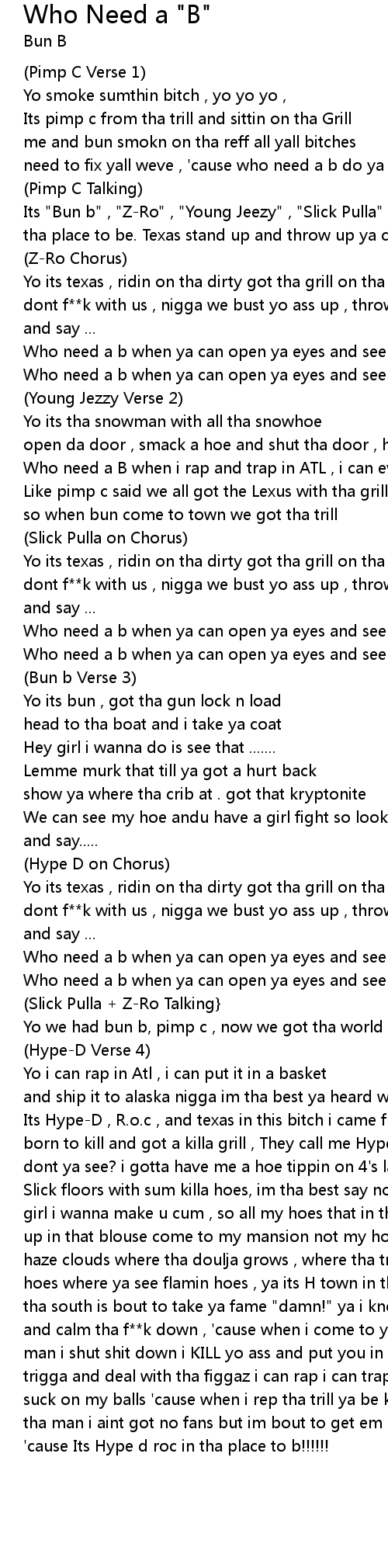 | need to fix yall weve , 'cause who need a b do ya see? | |