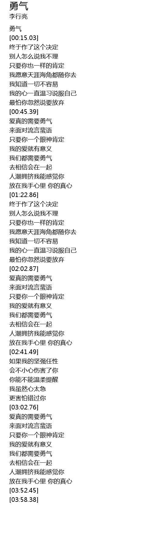 | [03:05.66] | ài zhēn de xū yào yǒng qì |