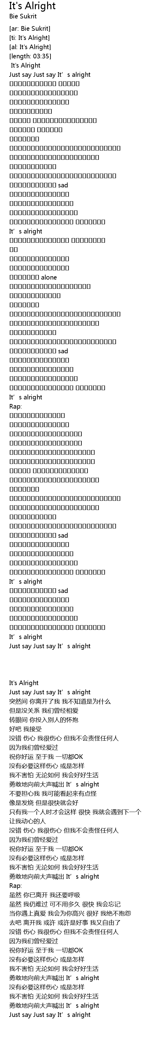 | [03:14.38] | Just say Just say It' s alright |