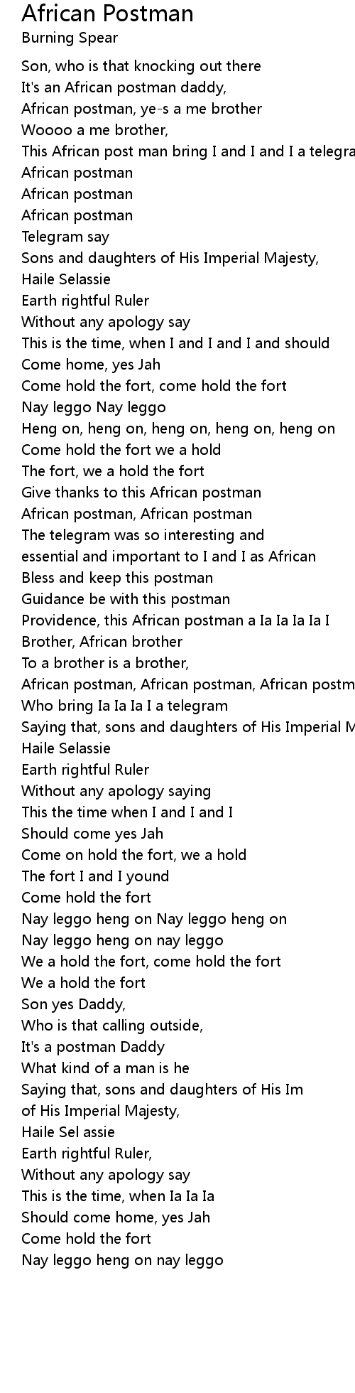 This African post man bring I and I and I a telegram |