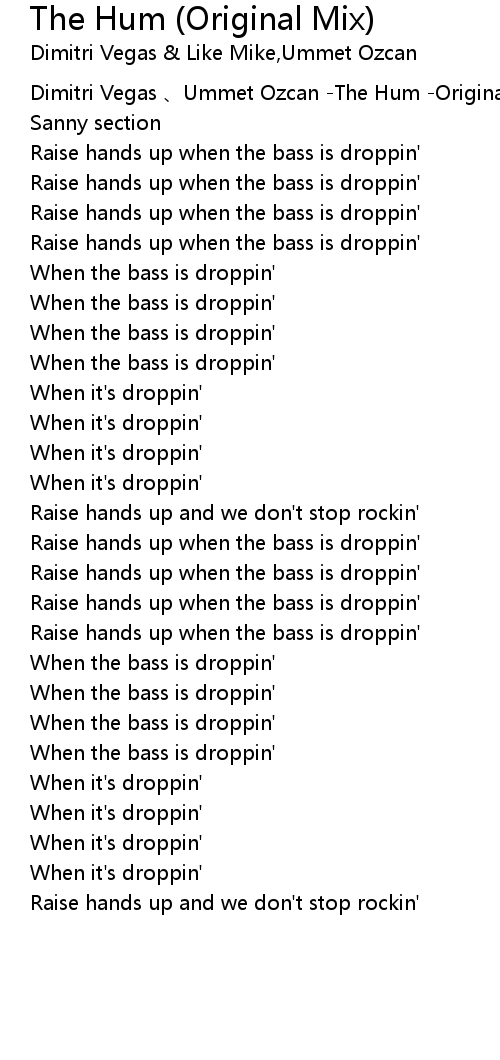 | [00:00.22] | Dimitri Vegas Ummet Ozcan The Hum Original Mix bǎn |